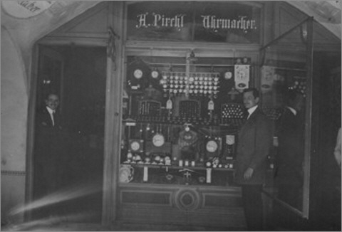 Georg Pirchl kam im Jahre 1869 nach Meran und hat am Rennweg das Handwerk als Uhrmacher begonnen. Zusammen mit seinem Sohn Josef Luis baute er den schon damals bekannten Uhrmacherbetrieb auf. 1878 wird die Gründung der Firma PIRCHL zum ersten mal in der Gemeindechronik erwähnt.